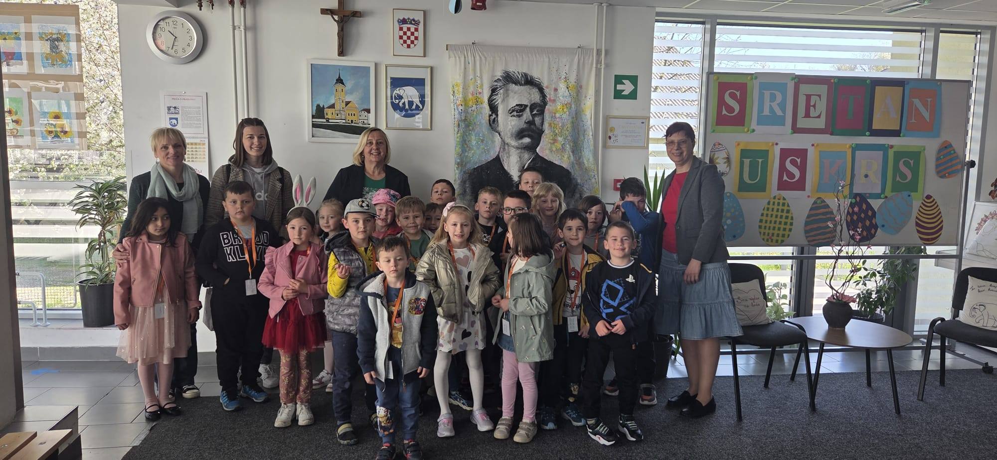 Dvadeset veselih i radoznalih mališana sa svojom tetom Marijetom i psihologinjom Mirnom posjetili su učenike i učiteljicu Snježanu u 1. razredu, a potom i svoju buduću učiteljicu Renatu i četvrtaše!