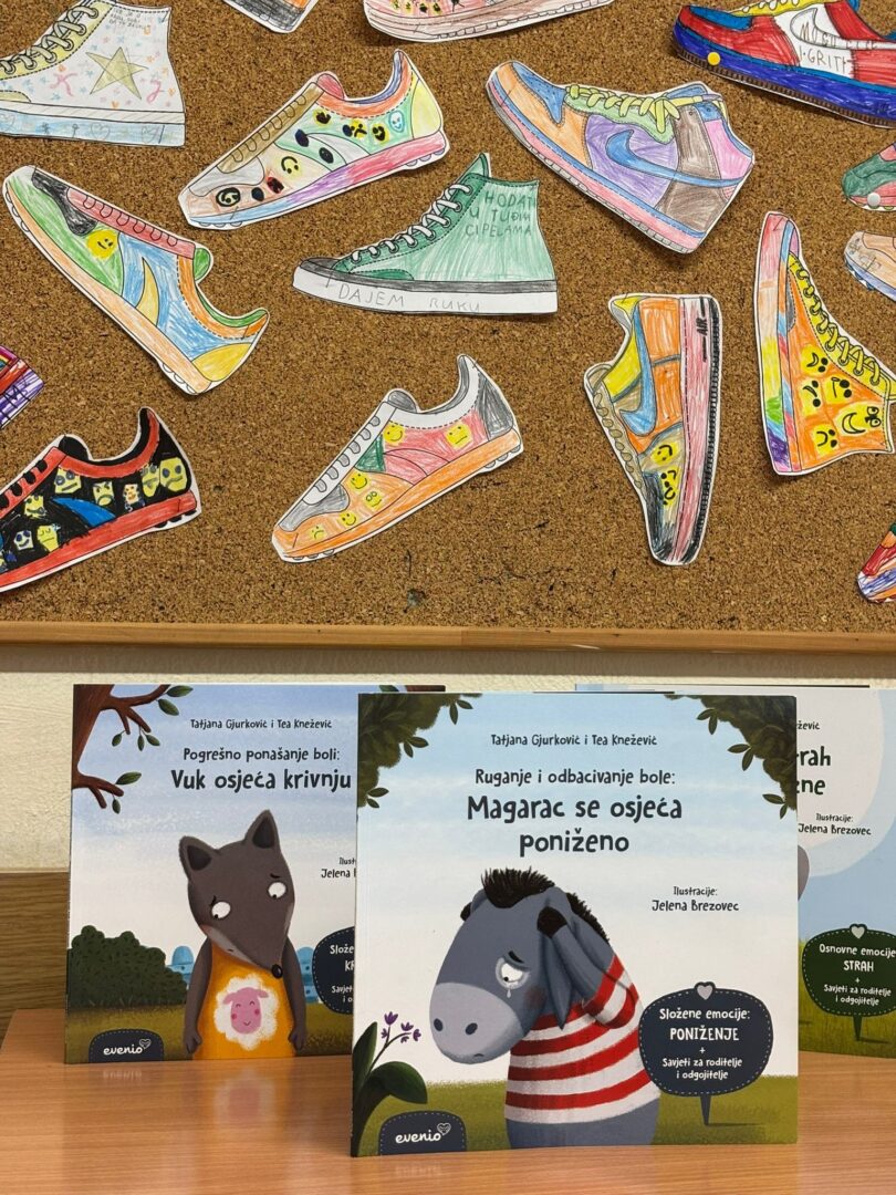 Učiteljice Karla i Emma odabrale su nekoliko prekrasnih slikovnica autorica Tatjane Gjurković i Tee Knezić, koje govore o snažnim emocijama koje i naši učenici često proživljavaju – poput poniženja, krivnje i straha. Kroz priče smo razgovarali o tome kako se nositi s tim osjećajima i kako pružiti podršku drugima.