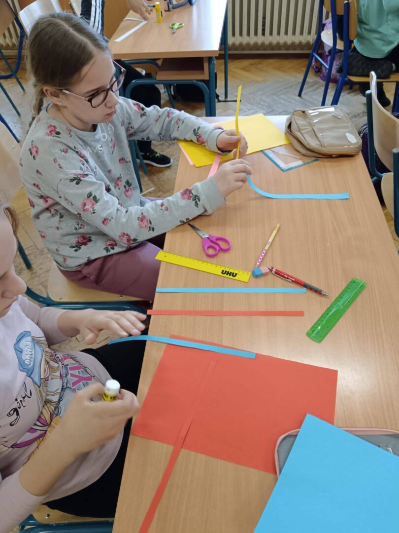 Radi kiše nismo mogli sijati i saditi u školskom vrtu pa smo na nastavi domaćinstva naučili plesti pletenice s četiri trake, koje smo iskoristili za lijepe straničnike. Pogledajte!