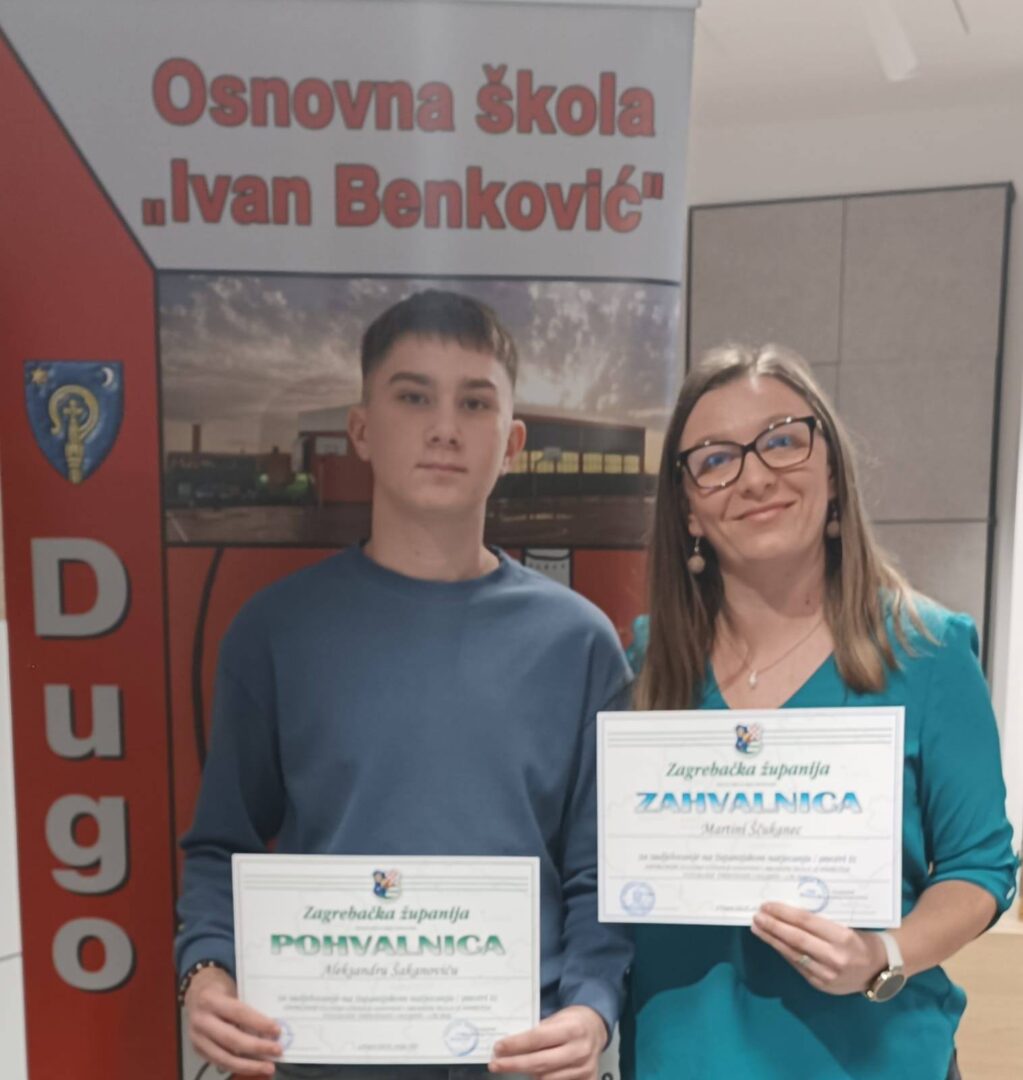 Čestitamo Aleksandru na velikom uspjehu, strpljenju za izradu rada i promociji naše škole, kao i mentorici Martini Šćukanec, a domaru Robertu Novoselu zahvaljujemo na sigurnoj vožnji.