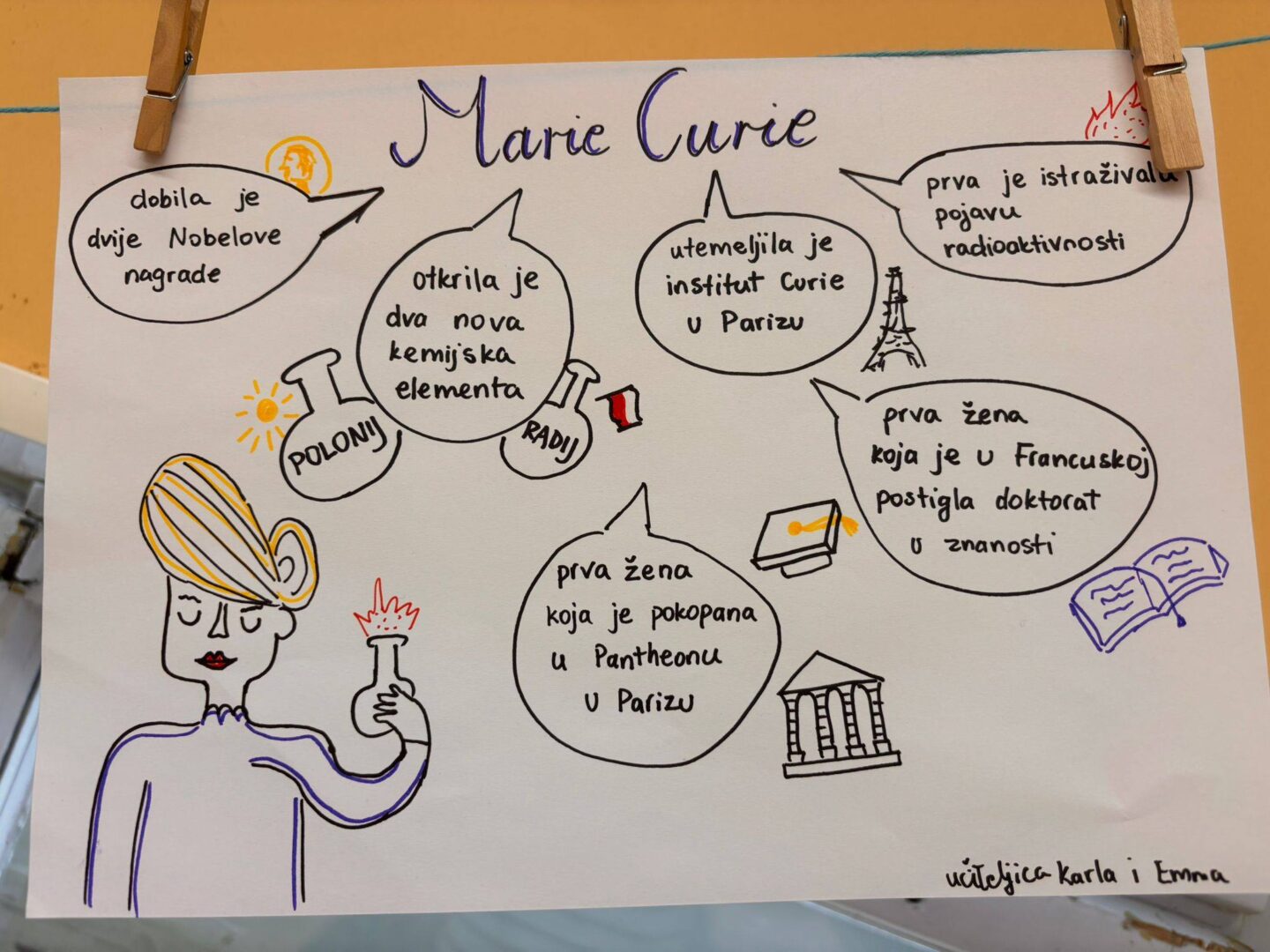 Nakon gledanja edukativnog videozapisa o znanstvenici Marie Curie, uz pomoć knjižničarke i knjige “Žene u znanosti”, učenici u produženom boravku su s učiteljicama Karlom Fabijanec i Emmom Majerić istraživali i čitali o toj poučnoj temi.