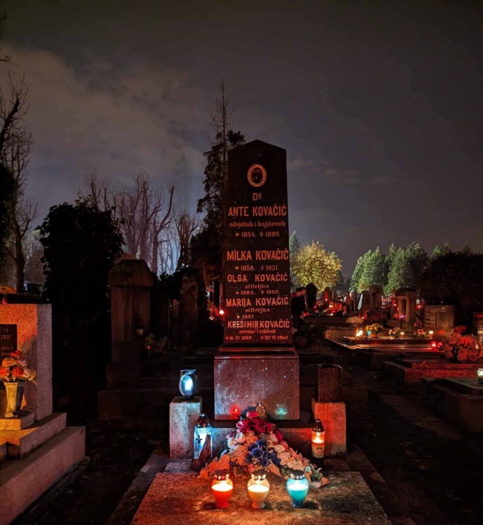 Posljednje počivalište Ante Kovačića je u obiteljskoj grobnici na zagrebačkom Mirogoju.